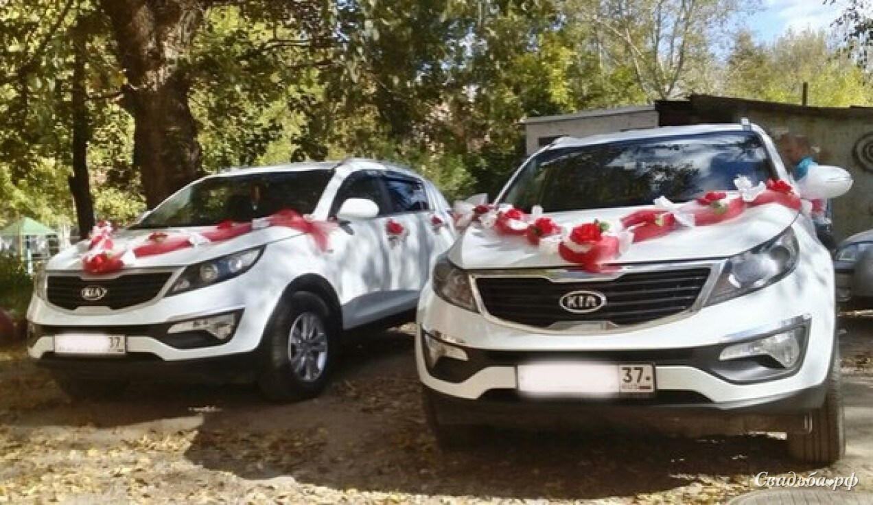 В наличии много автомобилей. Огромный выбор свадебных украшений для авто.