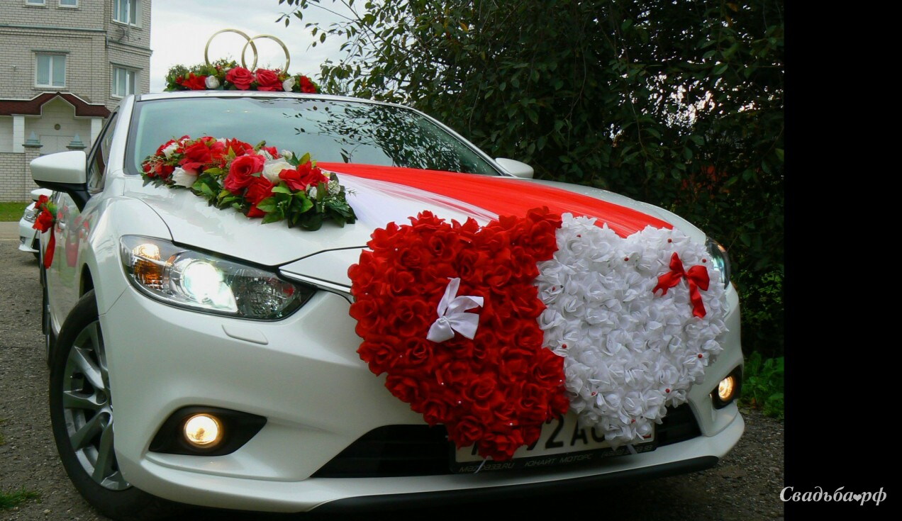 В наличии много автомобилей. Огромный выбор свадебных украшений для авто.